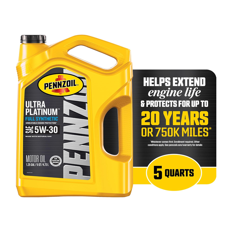 - Pennzoil Ultra Platinum comes with a 20-year, 750,000 mile warranty** to protect your engine and give you peace of mind to drive every mile as hard as you can