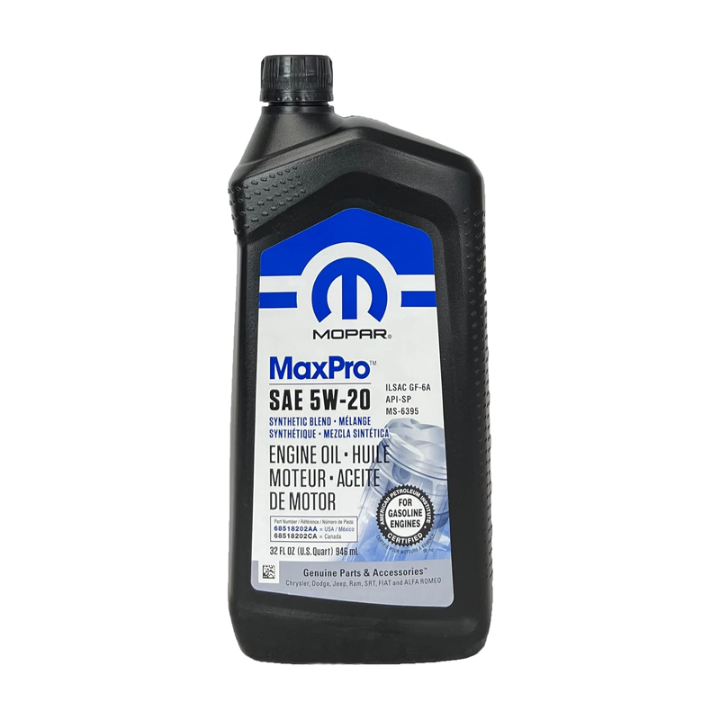 Mopar MaxPro 5W20 SAE Motor Oil for Jeep Dodge Chrysler Ram 1 Quart (Pack of 6)(68518202AA)