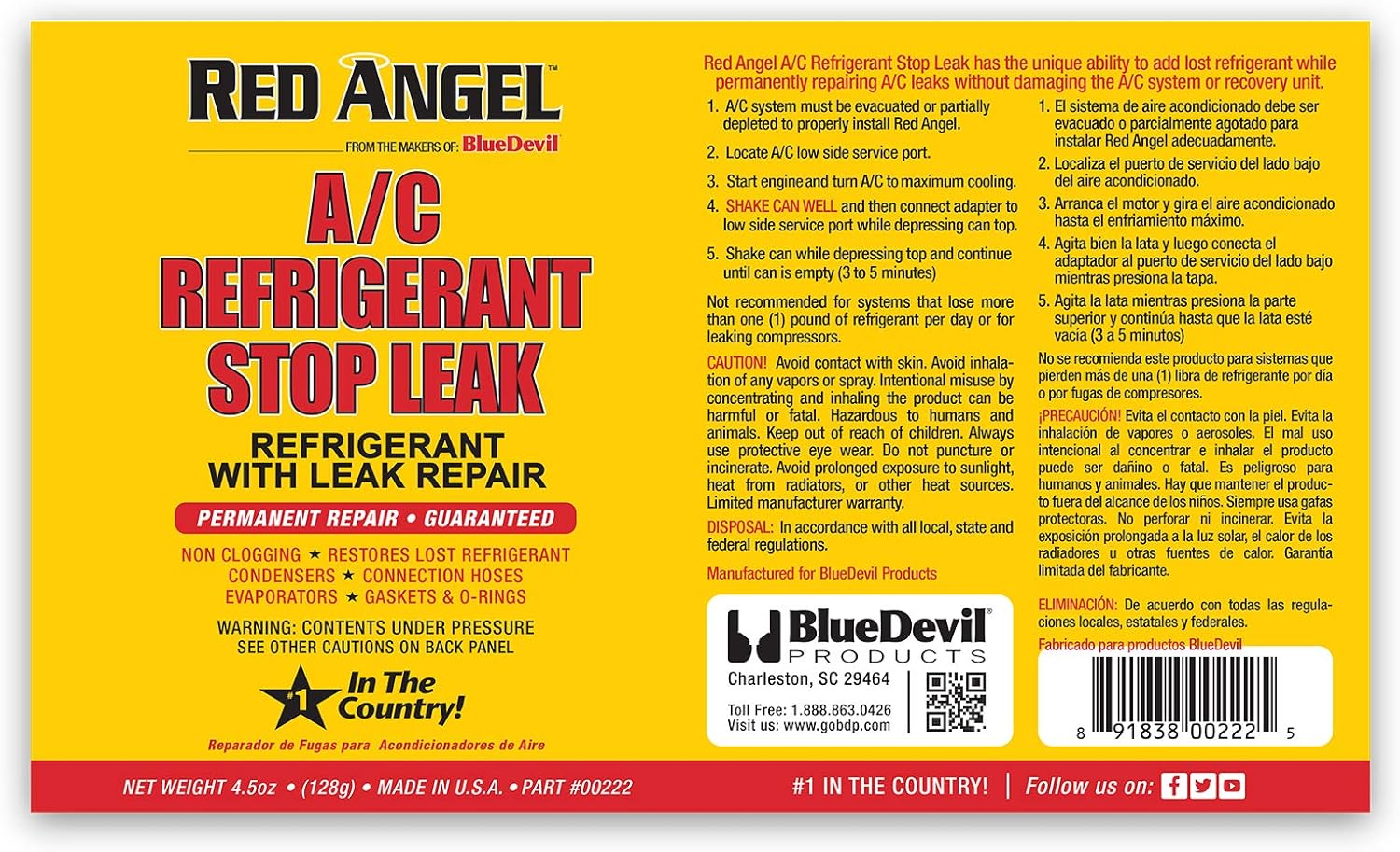 Red Angel A/C Refrigerant Stop Leak & Conditioner (00222) - 4.5 oz.(BDEV00222)