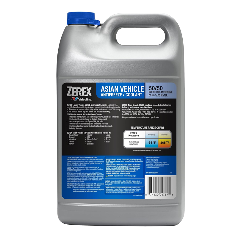 Zerex Asian Vehicle Blue Silicate and Borate Free 50/50 Prediluted Ready-to-Use Antifreeze/Coolant 1 GA (Case of 6)(861398)