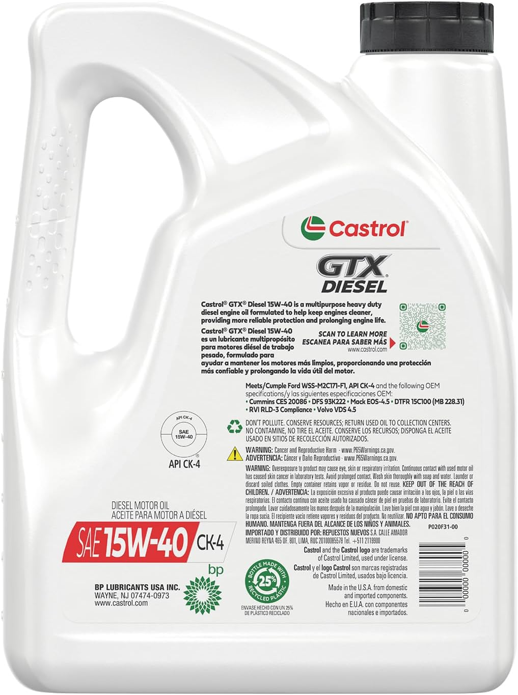 Castrol GTX CK-4 Conventional Diesel Motor Oil, 15W-40, 1 Gallon (Pack of 3)(15C468)