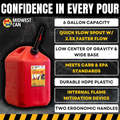 Midwest Can 5610 Safe-Flo Auto Shut Off 5 Gallon Gas Can – Durable Fuel Containers with FlameShield Safety System & Quick-Flow Spout - Red - 1 Pack
