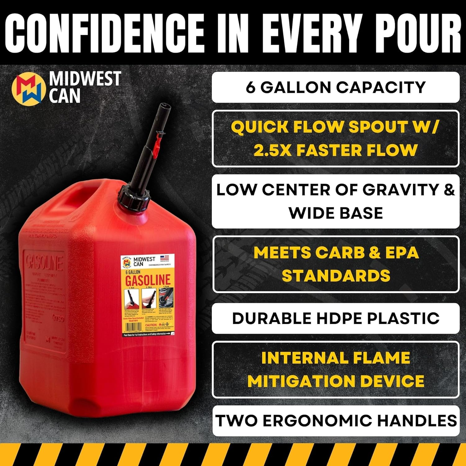 - Special Features: Internal Flame Mitigation Device;Vapor Locking Quick-Flow Spout;High Quality Hdpe Plastic;Two Handles
