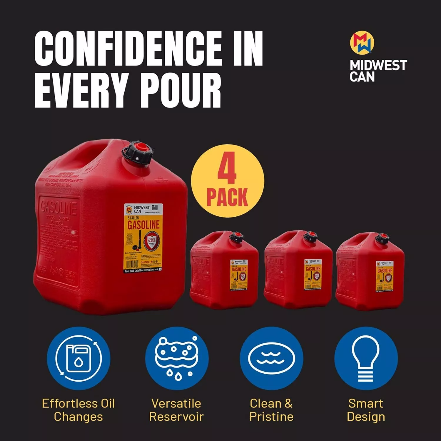 Midwest Can Company Gas Can Fuel Container Jug (4 PACK)(5610MID)