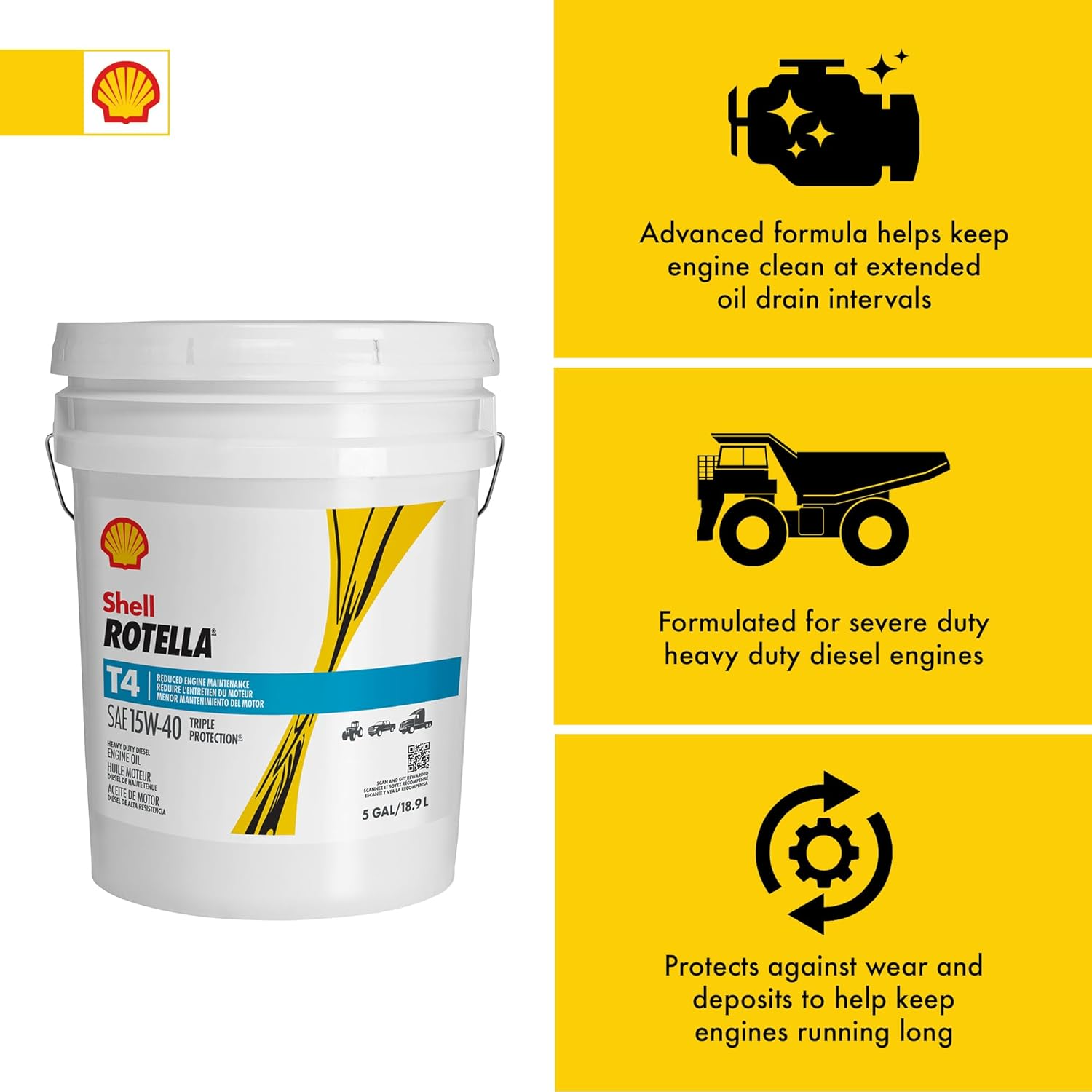 Shell Rotella T4 Triple Protection 15W-40 Diesel Engine Oil, 5 Gallon(550045128)