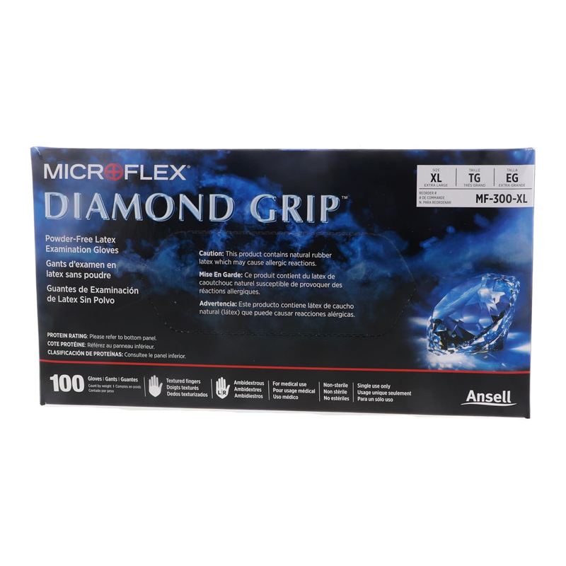 Diamond Grip Exam Glove Extra Large, XL, NonSterile Latex Standard Cuff Length Textured Fingertips White Not Chemo Approved, MF-300-XL - CASE of 1000