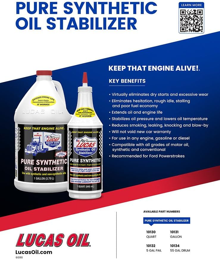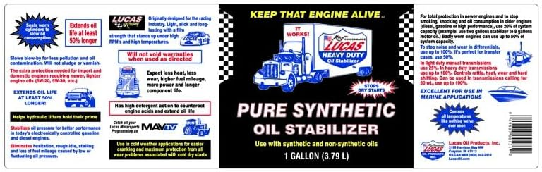 | Model | Lucas Oil 10131 Pure Synthetic Oil Stabilizer - 1 Gallon (Pack of 4) |