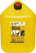 Midwest Can 8610 Safe-Flo Auto Shut Off 5 Gallon Diesel Can Yellow Plastic Fuel Container with FlameShield Safety System & Quick-Flow Spout - 4 Pack